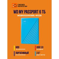 Купить Внешний накопитель HDD Western Digital My Passport 6 Тб USB 3.2 Gen 1, голубой с доставкой по всей России.