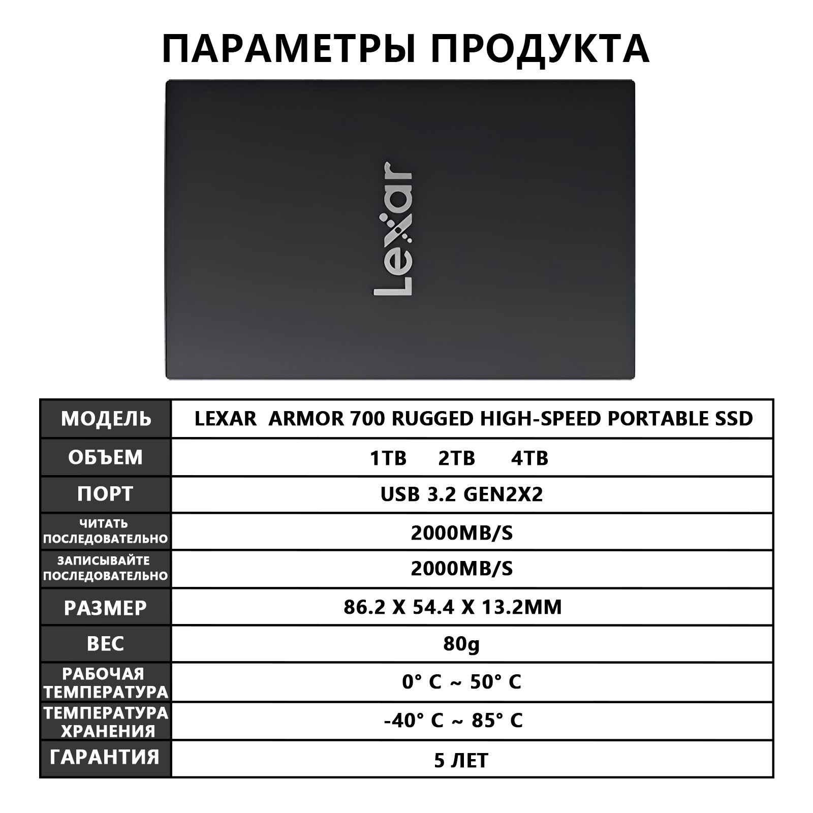 Параметры производительности: благодаря стандарту передачи данных USB 3.2 Gen 2x2 официальная номинальная скорость чтения и записи достигает 2000 МБ/с, что значительно повышает эффективность передачи данных. Как большие файлы, так и сложные данные передаются быстро и в короткие сроки.