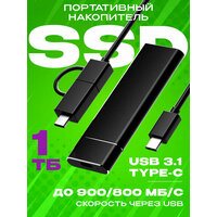 Купить Внешний портативный SSD 1ТБ (Черн./1024ГБ) USB3.1. Хранилище для смартфона, телефона, компьютера. с доставкой по всей России.