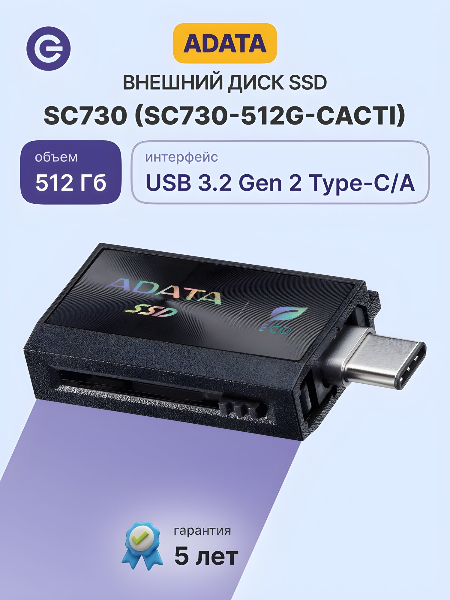 Внешний SSD накопитель ADATA SC730 512GB USB 3.1 Type-A/Type-C скорость чтения/записи 600 МБ/с ударопрочный корпус: сравнение цен, характеристики, фото, актуальное наличие и цены.