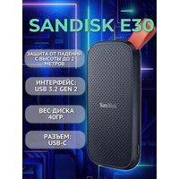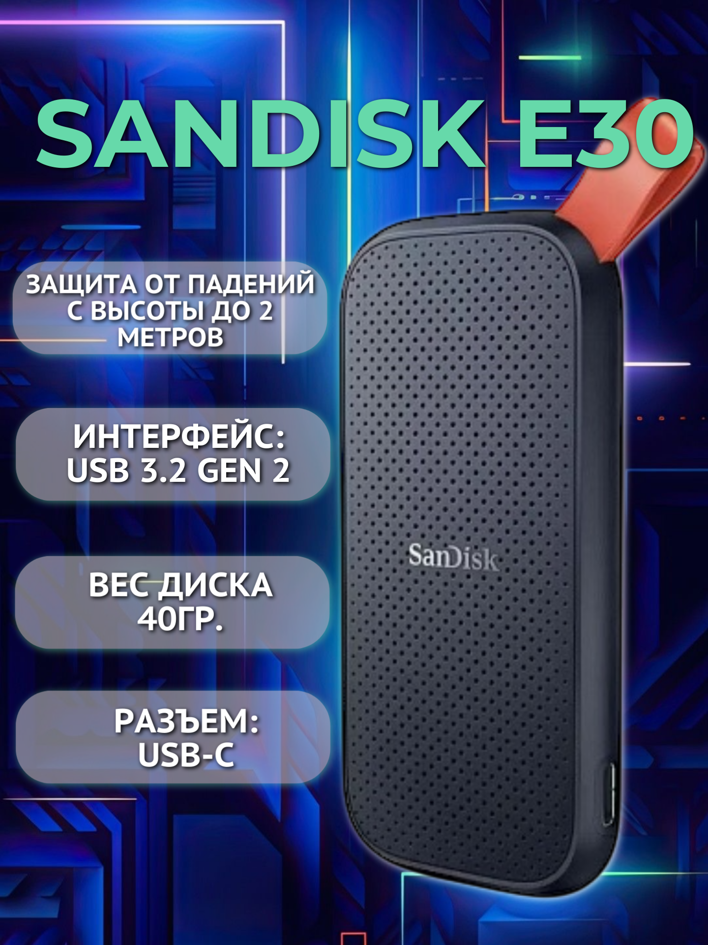 2 ТБ Внешний SSD SanDisk Extreme Portable, USB 3.2 Gen 2 Type-C, черный, Е30, SDSSDE30-2T00-Z26: сравнение цен, характеристики, фото, актуальное наличие и цены.