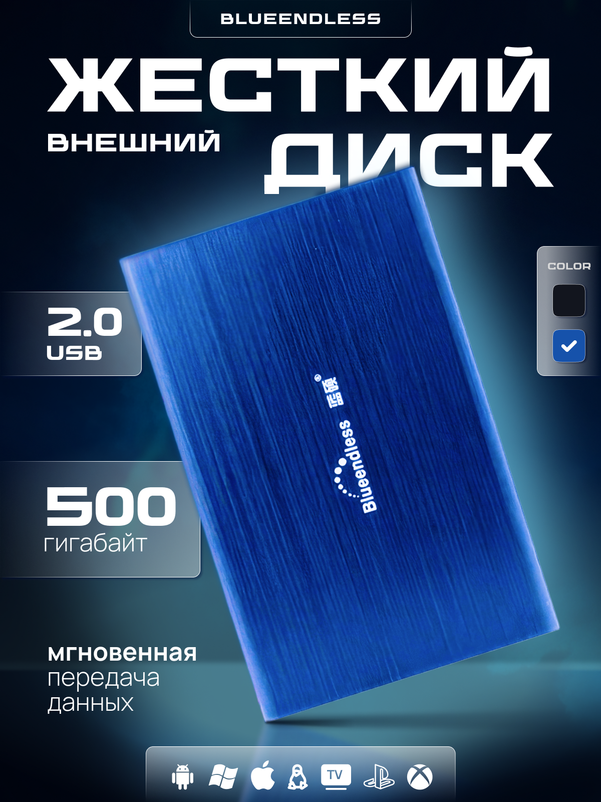 Купить Внешний жесткий диск HDD 500Гб Blueendless синий с доставкой по всей России. Внешний жесткий диск HDD 500Гб Blueendless синий: сравнение цен, характеристики, фото, актуальное наличие и цены.