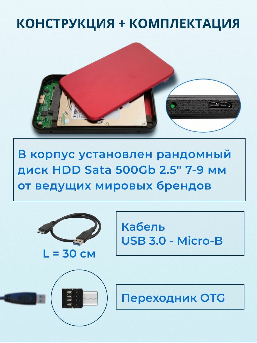 | Комплектация | Внешний жесткий диск, кабель USB 3.0. переходник OTG |