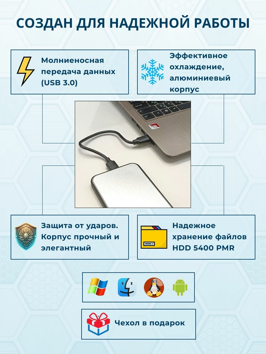 | Комплектация | Внешний жесткий диск, кабель USB 3.0. чехол |
