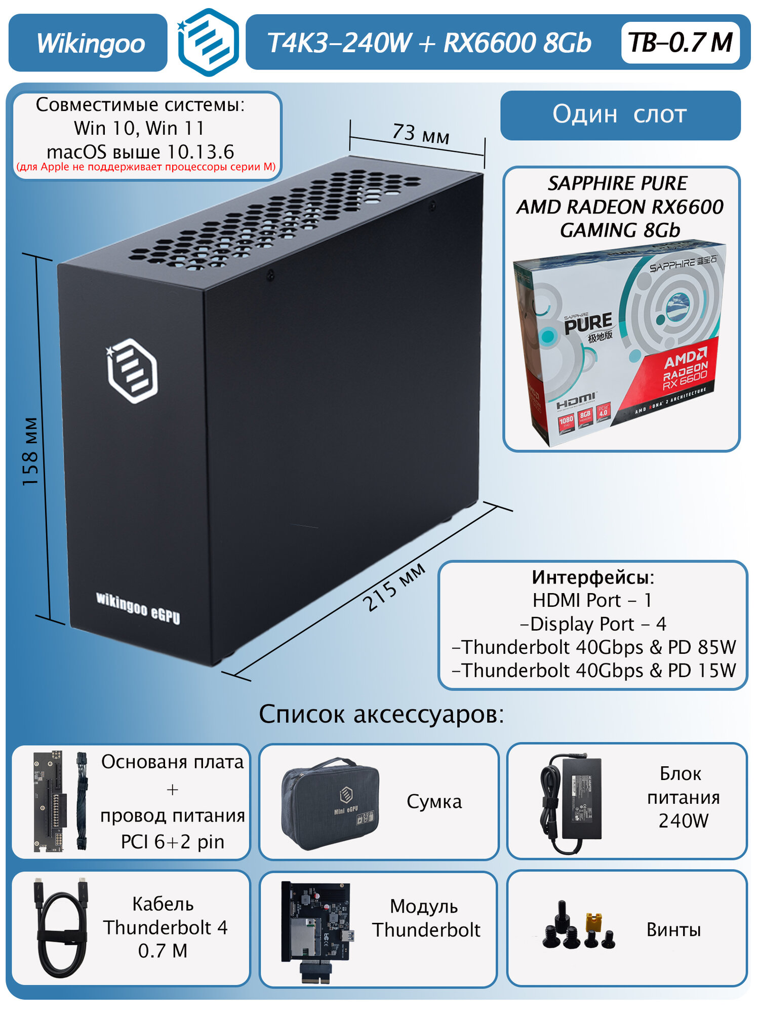 | Разъемы и интерфейсы | выход DisplayPort x 4, выход HDMI |