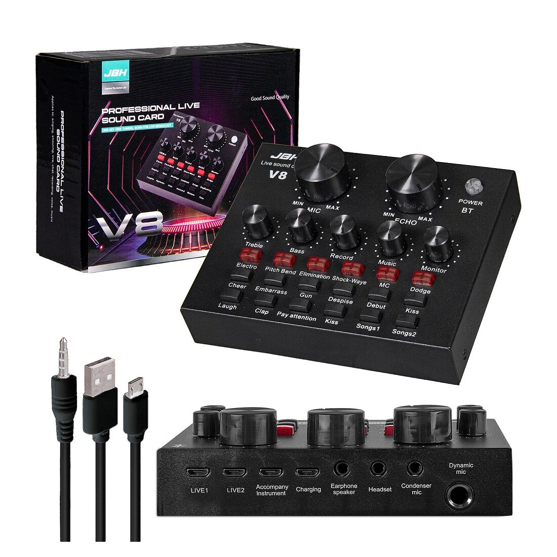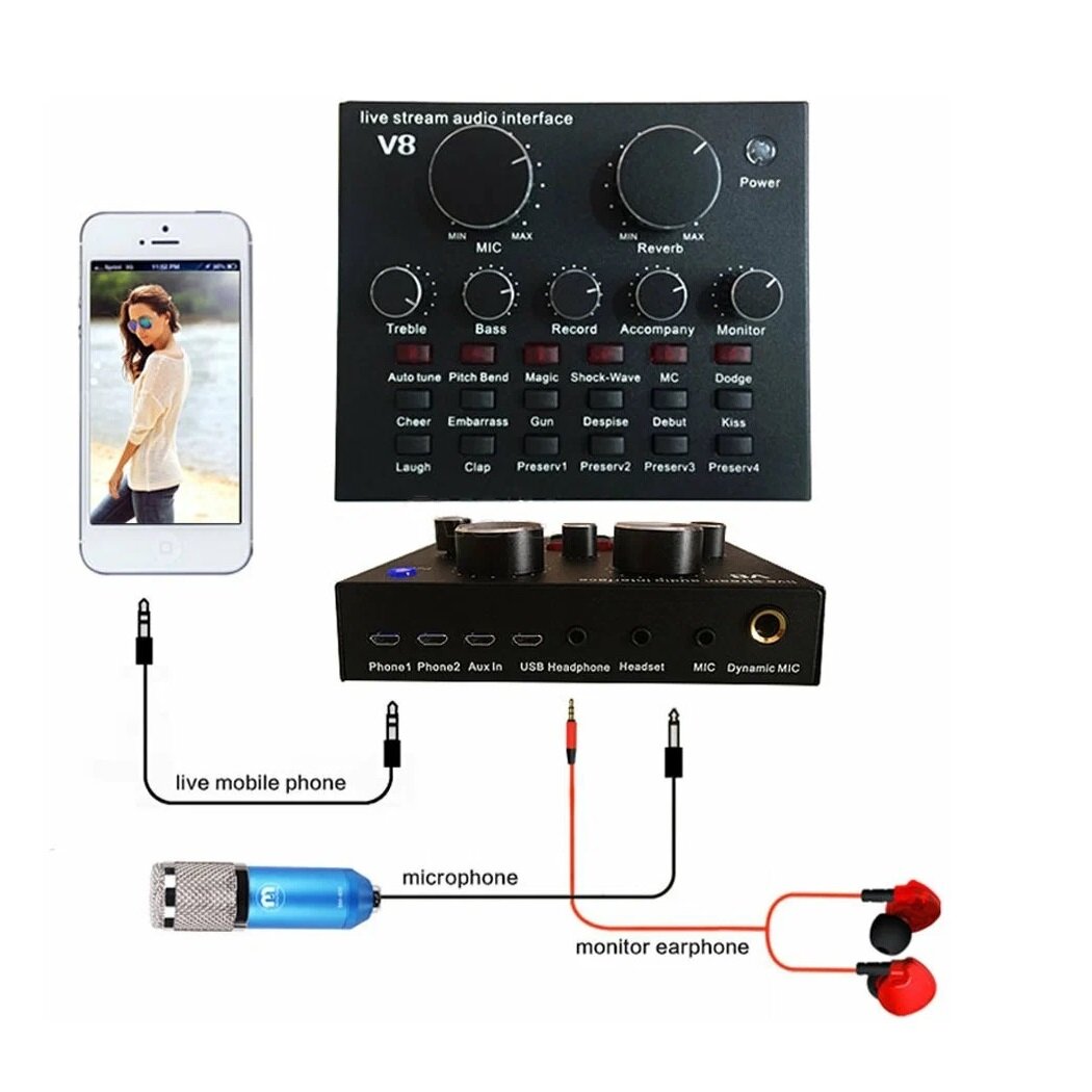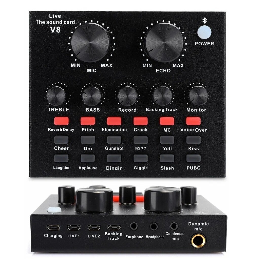 Внешняя звуковая карта, пульт микширования, усилитель громкости Sound card JBH V8 для микрофона/компьютера/телефона: сравнение цен, характеристики, фото, актуальное наличие и цены.