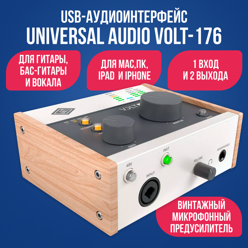 Оригинальная звуковая карта, Universal Audio Volt 176 - Universal Audio, внешняя звуковая карта, аудиоинтерфейс — Universal Audio Volt 176 — это компактный USB-аудиоинтерфейс, который идеально подходит для вокалистов, авторов песен, гитаристов, стримеров и подкастеров.