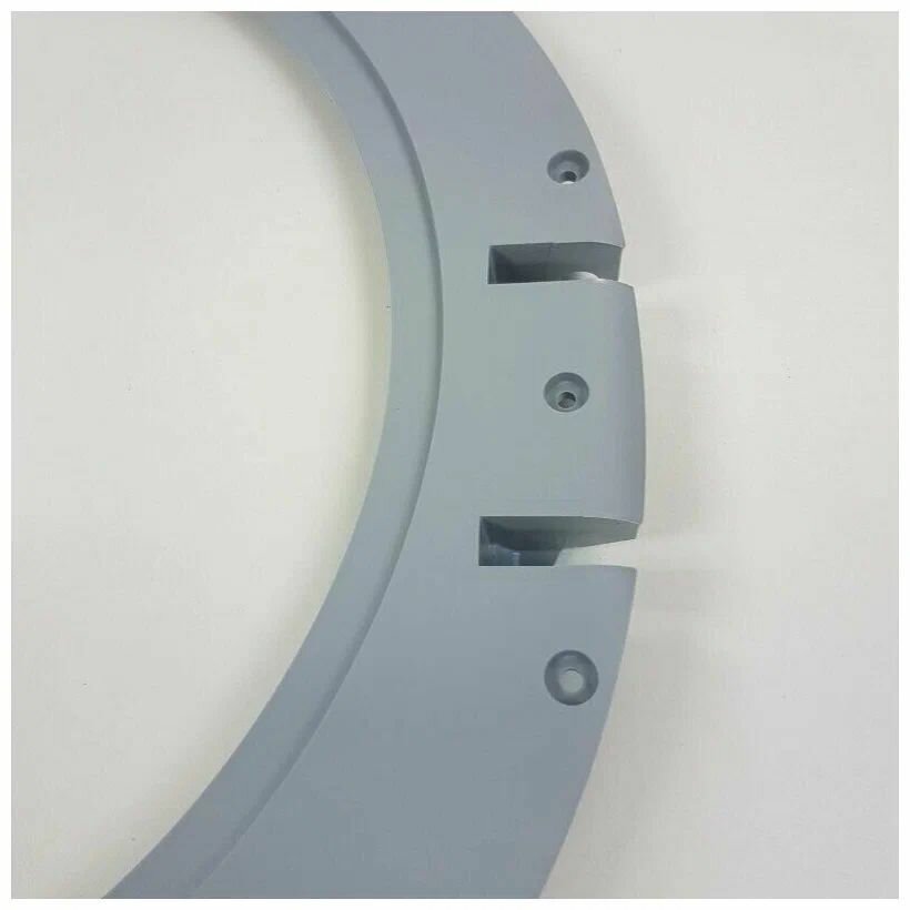 Обрамление люка имеет посадочное место под петлю (шарнир) дверцы, что обеспечивает удобство и простоту установки. В комплекте с обрамлением люка поставляется обод с отверстиями под саморезы и крючок (защелку), что позволяет легко и быстро установить его на вашу стиральную машину.