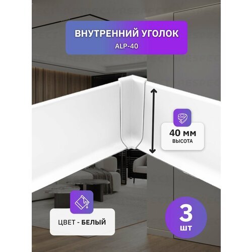 Внутренний алюминиевый уголок для белого накладного плинтуса 40мм станет отличным выбором для тех, кто ценит качество, функциональность и стиль в интерьере.