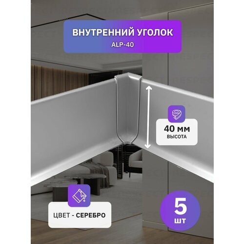 Выбирая внутренний алюминиевый уголок для серебристого накладного плинтуса 40мм, вы получаете качественный и стильный аксессуар для своего дома или офиса.