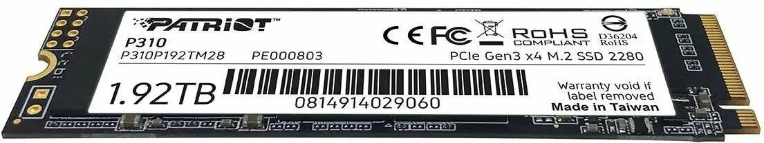 Внутренний SSD-диск Patriot Memory Накопитель SSD Patriot PCIe 3.0 x4 1920GB P310P192TM28 P310 M.2 2280: сравнение цен, характеристики, фото, актуальное наличие и цены.