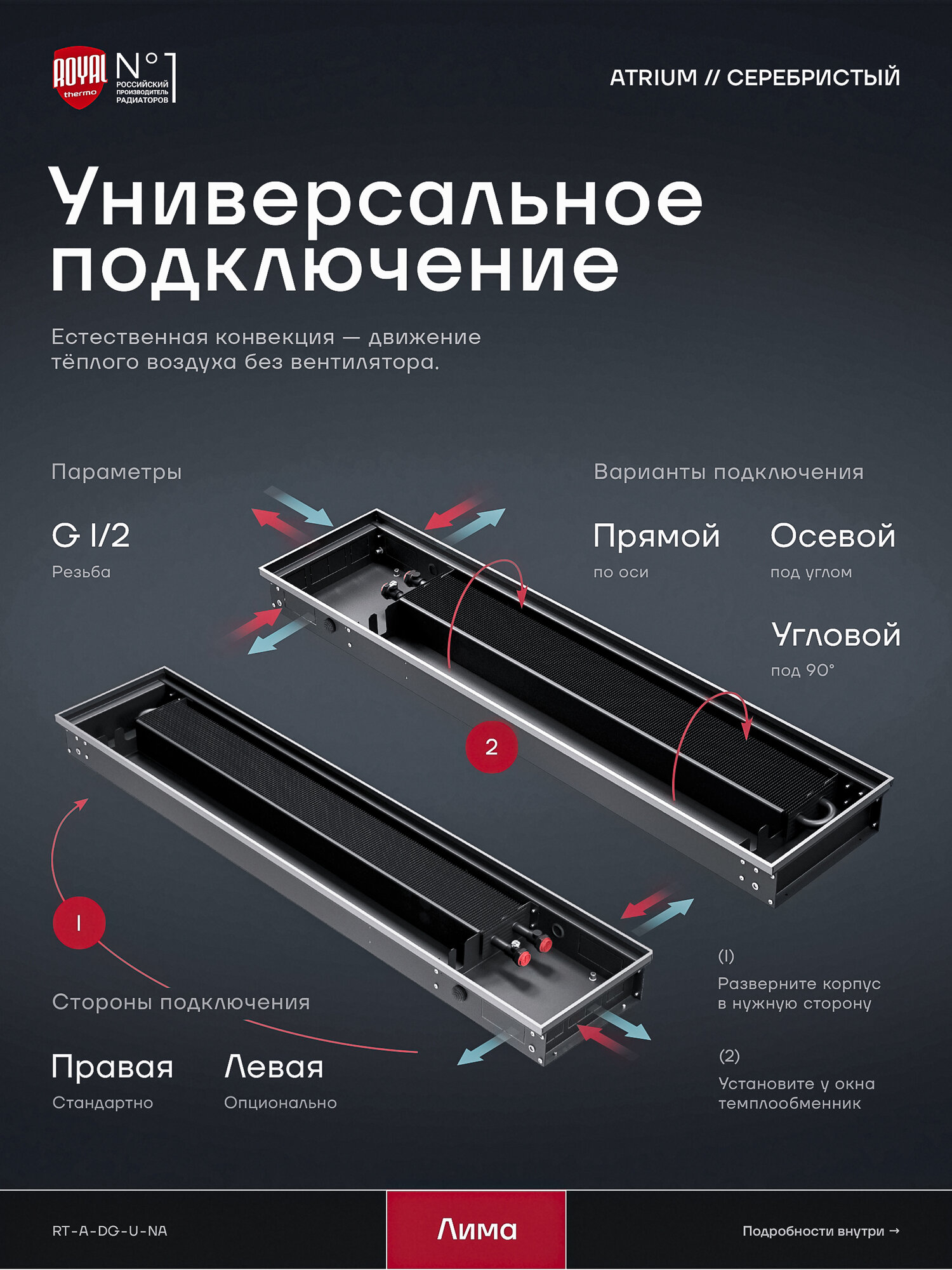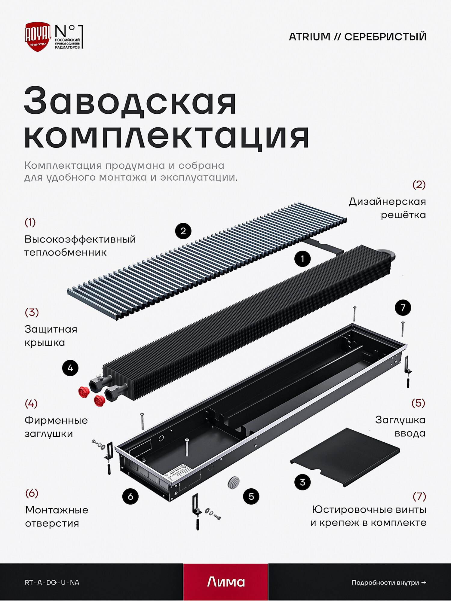 Купить Внутрипольный конвектор Royal Thermo Atrium 75-250-800 водяной, с решеткой цвет — алюминий с доставкой по всей России.