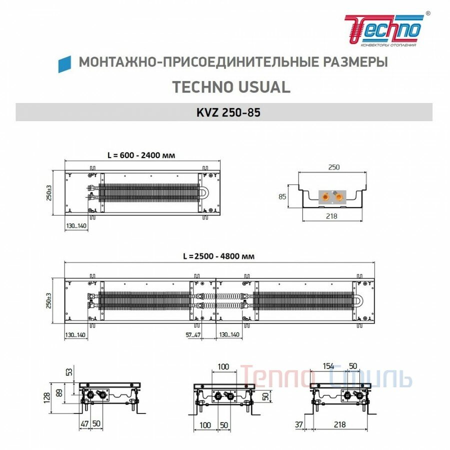 Внутрипольный конвектор Techno Usual KVZ 250-85-1600/C окантовка цвет серебро, без решетки/водяной/встраиваемый/: сравнение цен, характеристики, фото, актуальное наличие и цены.