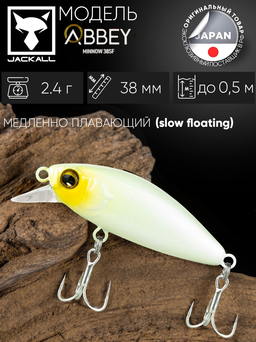 Воблер минноу на щуку/на головля/на судака/на окуня/на форель JACKALL Abbey Minnow 38SF цв. bone: сравнение цен, характеристики, фото, актуальное наличие и цены.