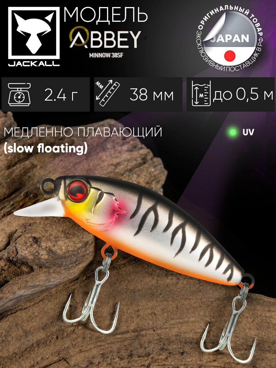 Воблер минноу на щуку/на головля/на судака/на окуня/на форель JACKALL Abbey Minnow 38SF цв. uv mat silver tiger: сравнение цен, характеристики, фото, актуальное наличие и цены.
