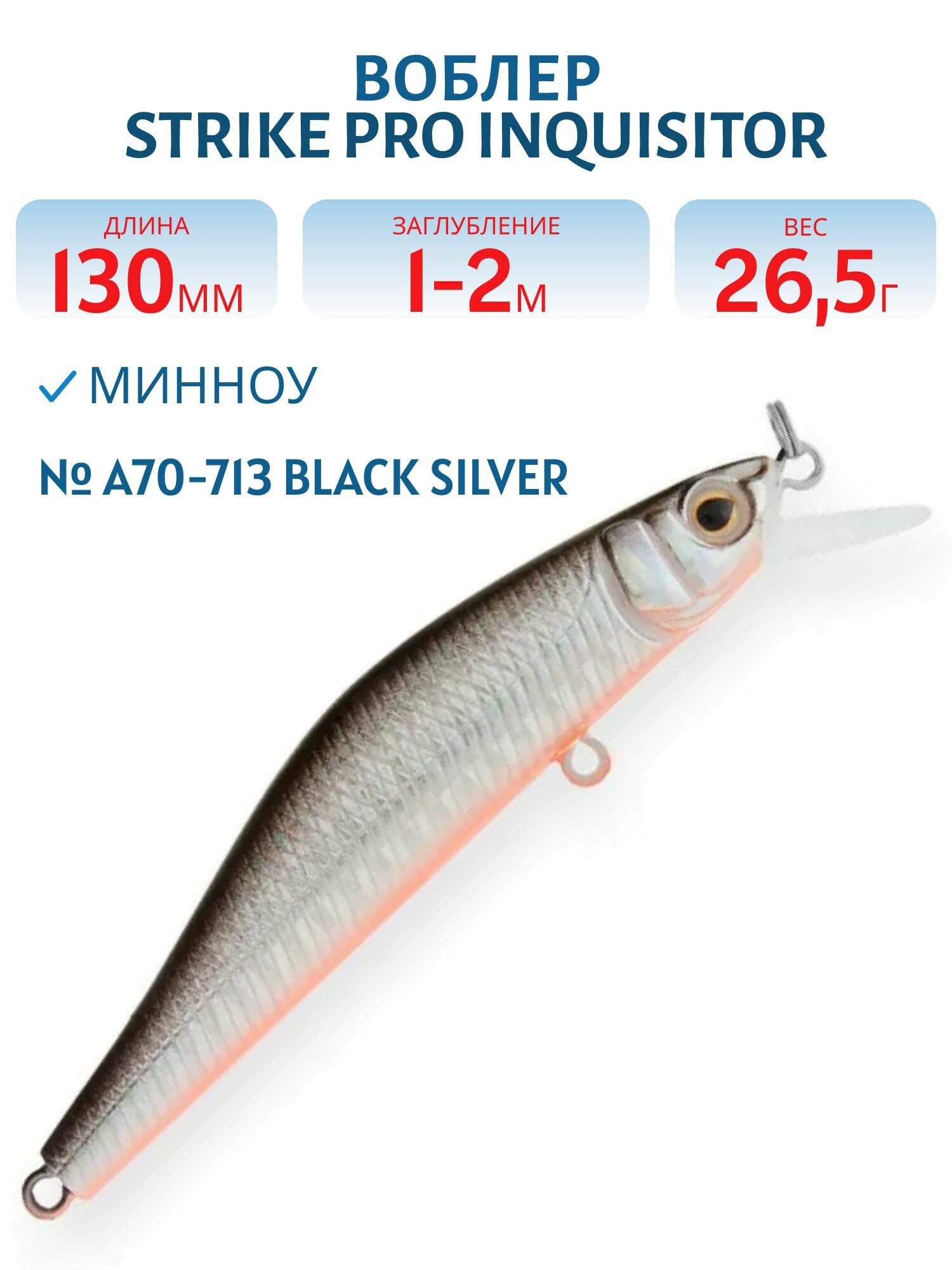 Купить Воблер Минноу Strike Pro Inquisitor 130SP, 130 мм, 26,5 гр, Нейтральный, цвет A70-713 Black Silver с доставкой по всей России. Воблер Минноу Strike Pro Inquisitor 130SP, 130 мм, 26,5 гр, Нейтральный, цвет A70-713 Black Silver: сравнение цен, характеристики, фото, актуальное наличие и цены.