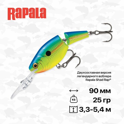 Купить Воблер Rapala Jointed Shad Rap, 90 мм, 25 гр, 3,3-5,4 м, #PRT с доставкой по всей России. Воблер Rapala Jointed Shad Rap, 90 мм, 25 гр, 3,3-5,4 м, #PRT: сравнение цен, характеристики, фото, актуальное наличие и цены.
