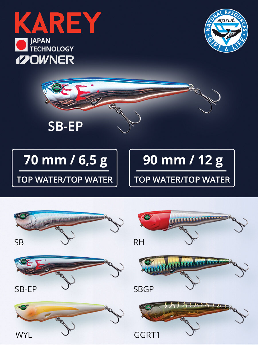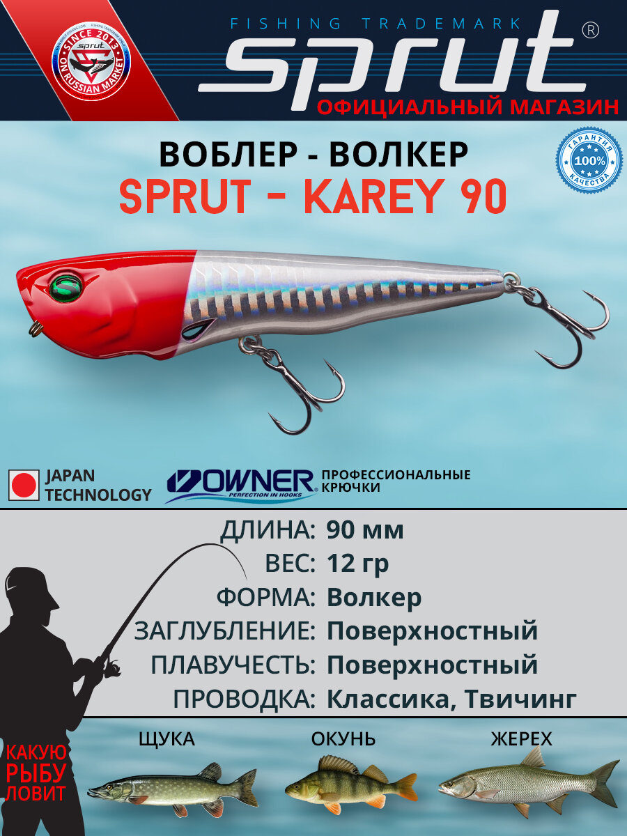 Купить Воблер Sprut Karey Top Water/90mm/12g/Top Water/RH с доставкой по всей России. Воблер Sprut Karey Top Water/90mm/12g/Top Water/RH: сравнение цен, характеристики, фото, актуальное наличие и цены.