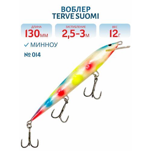 Купить Воблер TERVE Suomi 13 Original (прямая лопата), цвет #014 с доставкой по всей России. Воблер TERVE Suomi 13 Original (прямая лопата), цвет #014: сравнение цен, характеристики, фото, актуальное наличие и цены.