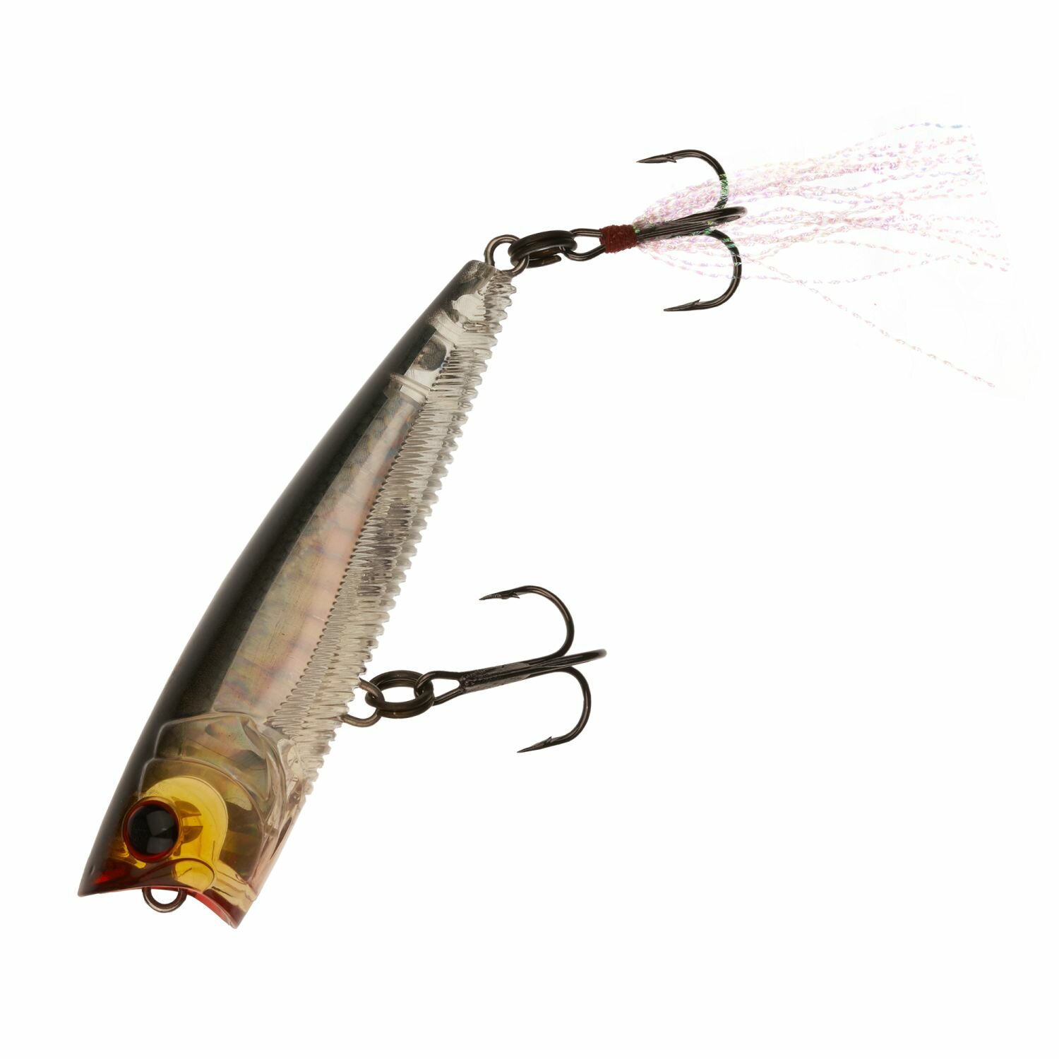 3DB Popper R1101 – это поверхностный воблер, поппер. Из отличительных особенностей этой приманки можно выделить необычную отделку, каждая мельчайшая деталь которой выглядит так реалистично, что у хищника не возникает сомнений в ее пригодности для трапезы. Отдельно стоит отметить систему отражения света, которая у этой приманки невероятно эффективна, даже в темное время суток воблер собирает все остатки проблесков лучей и сообщает хищнику о своем присутствии характерным для попперов бульканьем. Воблер незаменим в период активного поверхностного кормления таких рыб рыб как окунь, щука, жерех, и даже судак. Особенно привлекательна для рыбы игра воблера будет в период лета, на спокойном от ветровых волнений водоеме.