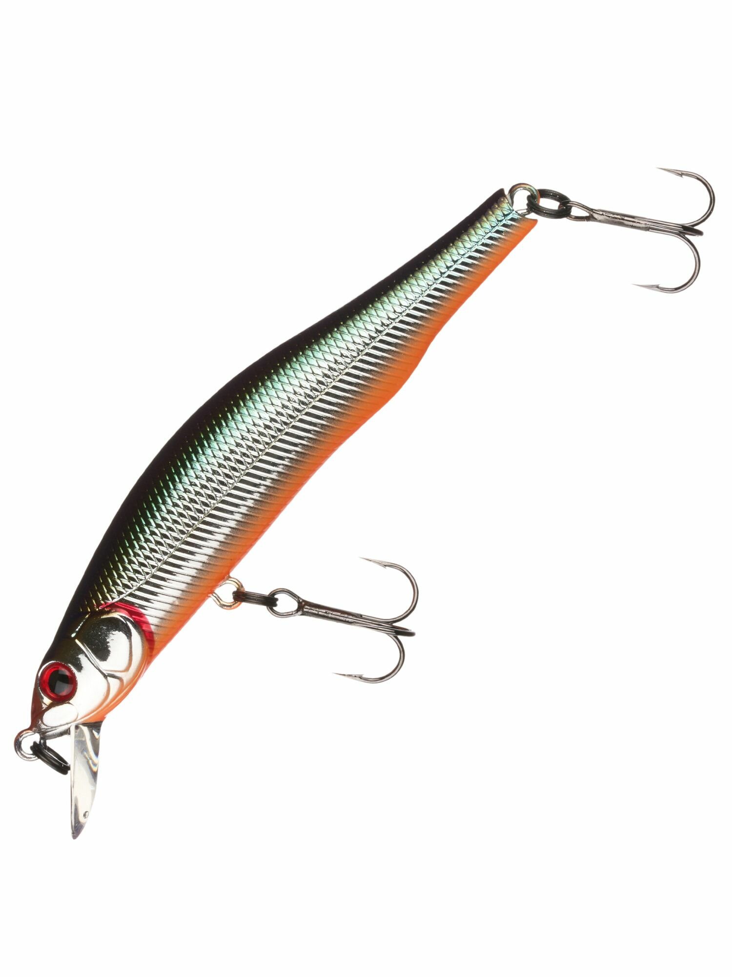 Все воблеры Orbit отличает удлиненное, прогонистое, округлое в сечении тело. Главная цель такого конструктива – придать приманкам обтекаемость, улучшить сопротивление в воде. Внутри тела размещена запатентованная балансировочная система Mag Drive Super High Balanced System с вольфрамовым грузом MZ-19. Благодаря этому осуществляется контроль за месторасположением приманок в воде во время проводки, существенно улучшаются полетные характеристики, повышается точность заброса. Помимо вольфрамового груза MZ-19 в головной части воблеров стационарно установлен еще один утяжелитель в виде латунного цилиндра. Именно за счет незначительного смещения центра тяжести в головную часть игра приманки приобретает характерные только для Orbit-ов черты. При неравномерной проводке в фазе твича воблеры Orbit клюют носом, всем своим видом напоминая кормящегося малька.