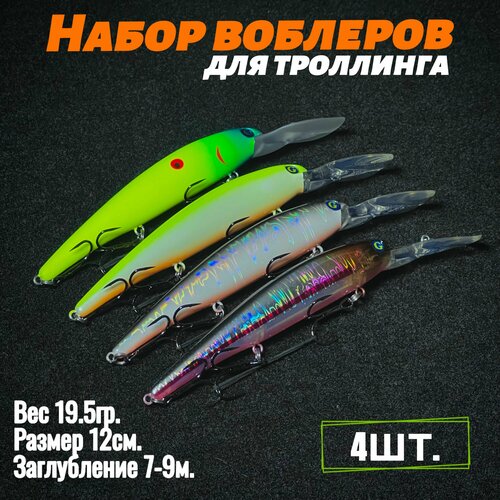 Представляем набор троллинговых воблеров, лучший аналог на Bandit, состоящий из четырех воблеров в самых топовых цветах на весеннего судака и щуку.