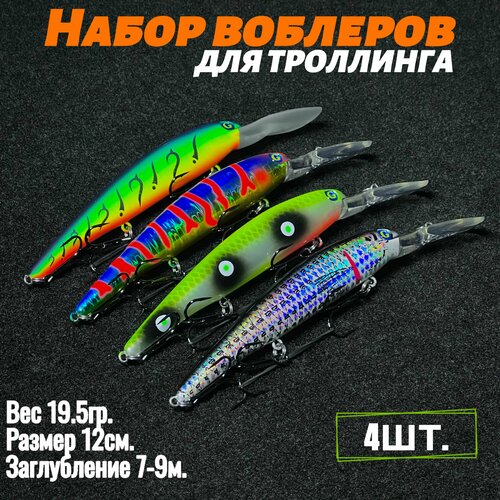Набор собран в лучших цветах кислота (раздражающий), тигр и битое стекло. В воблерах используются качественные тройники Owner а также японская краска для окраса воблеров, что продолжит жизнь ваших воблеров от острых зубов щуки и судака. Данным набором воблеров Bandit вы сможете ловить троллингом (на дорожку) на малых и большых реках и водохранилищах на глубинах 5-9 метров. Все зависит от диаметра используемого шнура или лески, а также расстояния отпуска от лодки. Вес 19.5гр, размер 120мм. Эти воблеры станут незаменимой частью вашего арсенала для ловли троллингом, обеспечивая отличные результаты в любых условиях. И на разных водоемах. Качество изготовления и долговечность этих приманок гарантирует их эффективность в длительной работе, что делает их отличным выбором для активной рыбалки и троллинга. Убедитесь, что у вас есть этот набор воблеров в вашем снаряжении для рыбалки, чтобы обеспечить успешный улов и незабываемые моменты на водоеме.