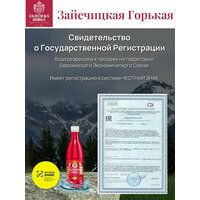 Природная негазированная лечебная сульфатно-магниевая минеральная вода высокой минерализации (33 100-34 800 мг/л). Добывается близ местечка Зайечице у Бечова в Северной Чехии. Из источника поступает в виде холодного, слегка опалесцирующего гипертонического раствора желтоватого цвета, без запаха, с выраженным горьким вкусом. Вода залегает в мергелевых горных породах крайне низкой проницаемости, что обеспечивает исключительную чистоту данной минеральной воды и постоянство ее катионно-анионного состава. Минеральная вода Зайечицкая Горькая разливается без искусственного газирования. Уникальное количество природного магния в минеральной воде Зайечицкая Горькая определяет широкий спектр ее применения. Магний необходим для нормального функционирования клеток, участвует в большинстве реакций обмена веществ, стабилизирует сердечный ритм, облегчает симптомы нервного напряжения (беспокойство и раздражительность). Считается, что суточная потребность в магнии составляет 350-500 мг, что в случае с минеральной водой Зайечицкая Горькая составляет 80 мл. Минеральная вода Зайечицкая Горькая обладает выраженным холеретическим, холекинетическим и прокинетическим эффектом, что позволяет использовать ее у пациентов с заболеваниями билиарной системы (дискинезия желчного пузыря, дисфункция сфинктера Одди, хронический холецистит, холангит). Воду можно с успехом использовать с этой целью как для регулярного приема, так и для проведения тюбажей. Большое количество ионов магния в составе способствует применению минеральной воды Зайечицкая Горькая для лечения заболеваний толстой кишки, протекающих с запорами. Вода оказывает мягкое и стойкое послабляющее действие у пациентов с синдромом раздраженного кишечника, долихосигмой, гипотонией толстой кишки различного генеза. Этому также способствует противовоспалительный и цитопротекторный эффекты на слизистую оболочку кишки. Кроме того, минеральная вода Зайечицкая Горькая очищает и оздоравливает кожу; снижает содержание холестерина в крови; снимает мышечные спазмы, повышает выносливость; снижает тонус матки; эффективна при стрессах, нервных перегрузках и бессоннице. Горький вкус воды может быть полностью устранен смешиванием воды Зайечицкая Горькая с минеральной водой Билинска Киселка, при этом эффективность каждой из них увеличивается. Минеральная вода Зайечицкая Горькая разливается в оригинальные полиэтиленовые бутылки, защищающие содержимое от ультрафиолетовых лучей, что позволяет длительно сохранять уникальный физико-химический состав.