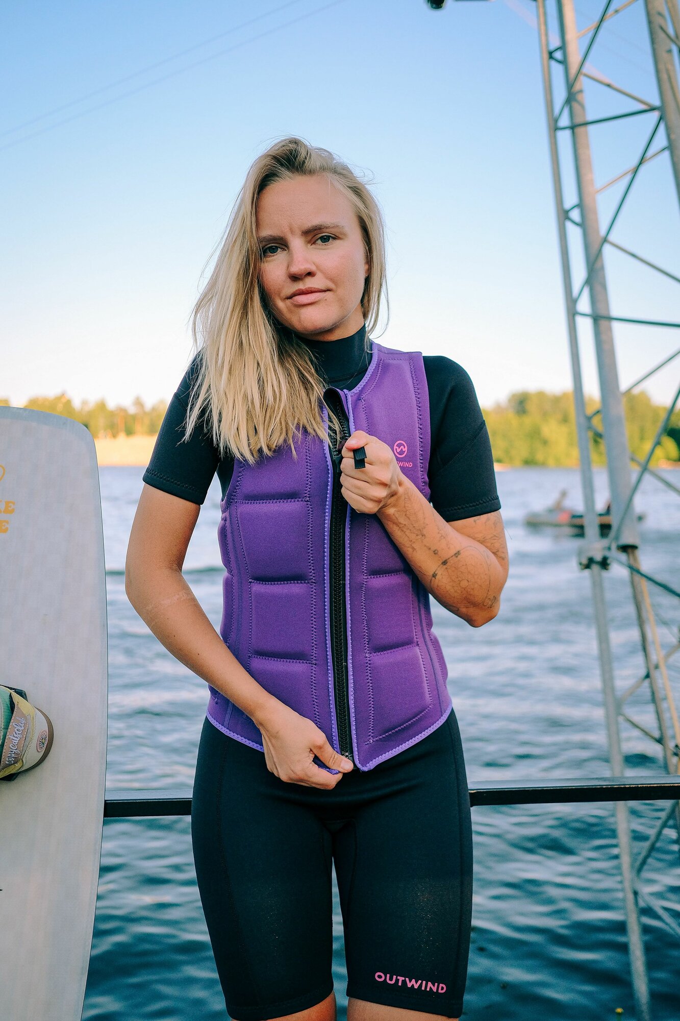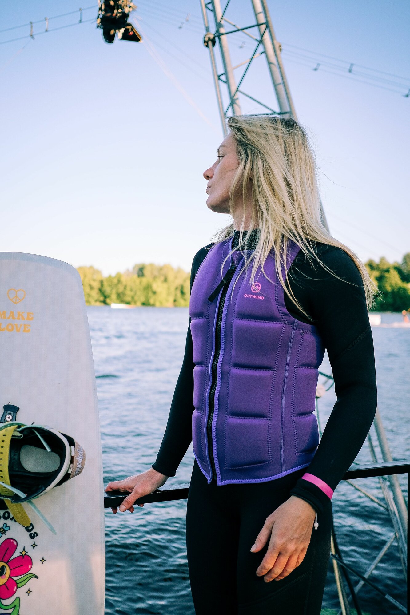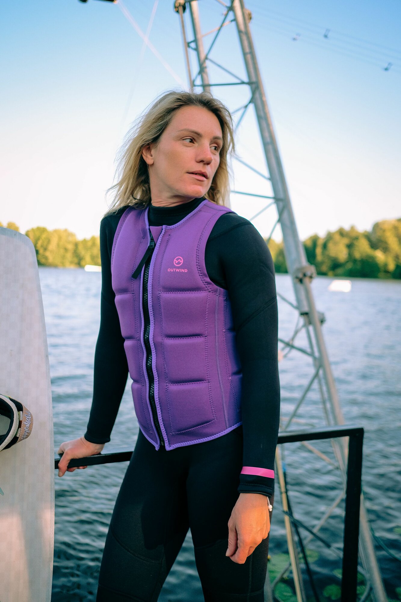 Водный антишоковый жилет для вейкборда Outwind Pow Водный жилет надежно защитит вас от падений во время катания на вейкборде. Идеально подойдет для катания на гидроцикле, сап борде и серфинге! Антишоковый жилет выполнен из премиум неопрена, благодаря чему он легко садится по фигуре и не стесняет движения во время использования. Женский защитный жилет Приталенный, ассиметричный крой Грудь и спина из эластичного и мягкого неопрена Двухслойная конструкция из неопрена обеспечивает правильную посадку жилета Защитные панели из легкой пены PVC Водоотталкивающая молния с фиксатором наверху