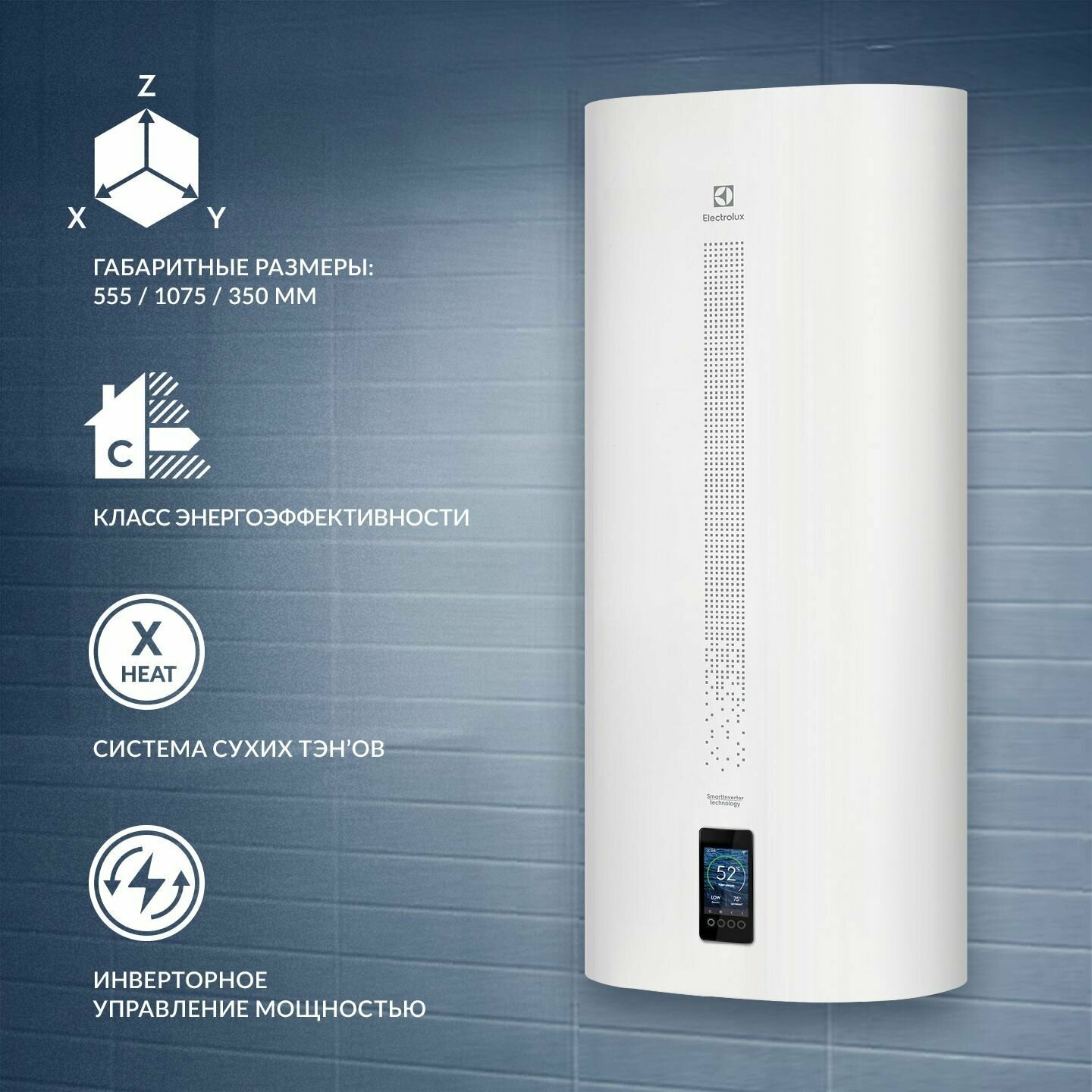 Electrolux серии EWH SmartInverter электрический накопительный водонагреватель с внутренним баком из нержавеющей стали, инверторным управлением и максимальным классом энергоэффективности - B.