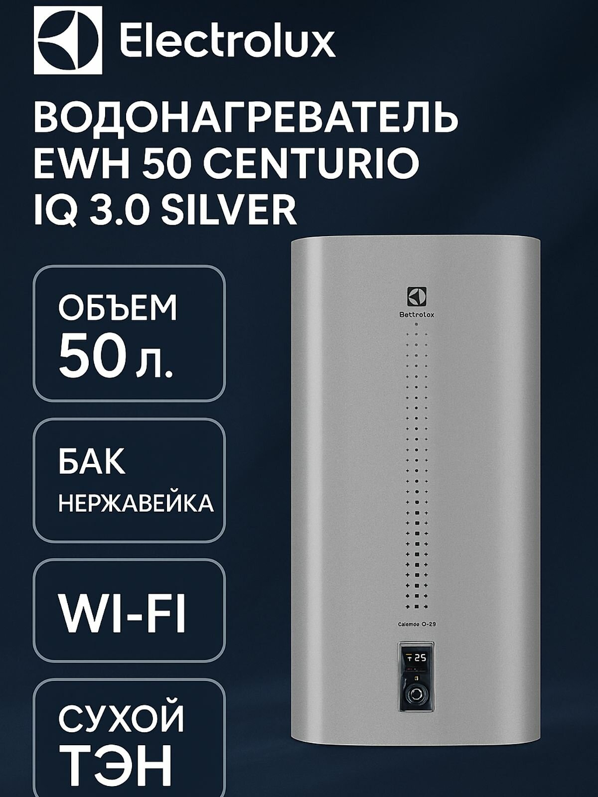 Купить Водонагреватель Electrolux EWH 50 Centurio IQ 3.0 Silver с доставкой по всей России. Водонагреватель Electrolux EWH 50 Centurio IQ 3.0 Silver: сравнение цен, характеристики, фото, актуальное наличие и цены.
