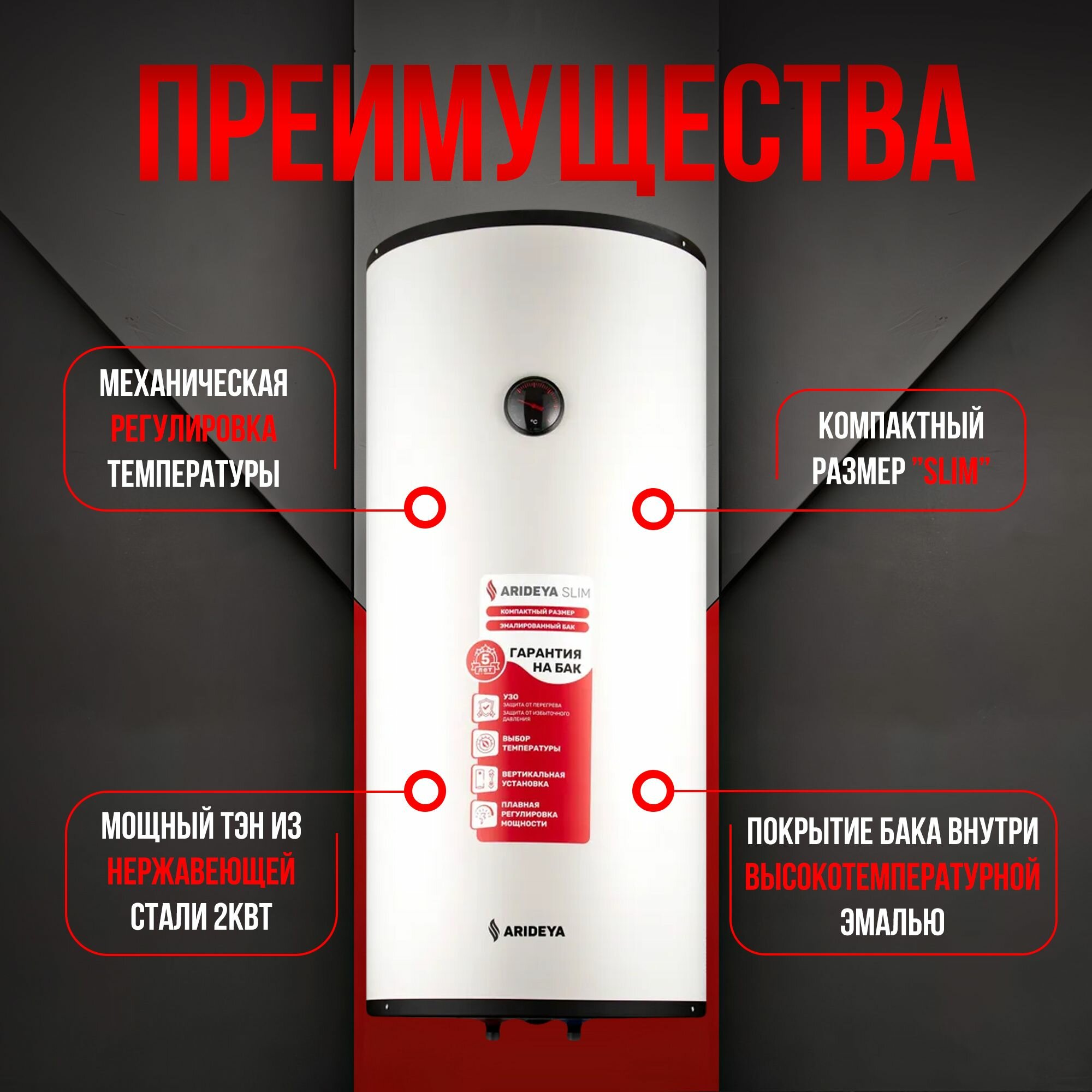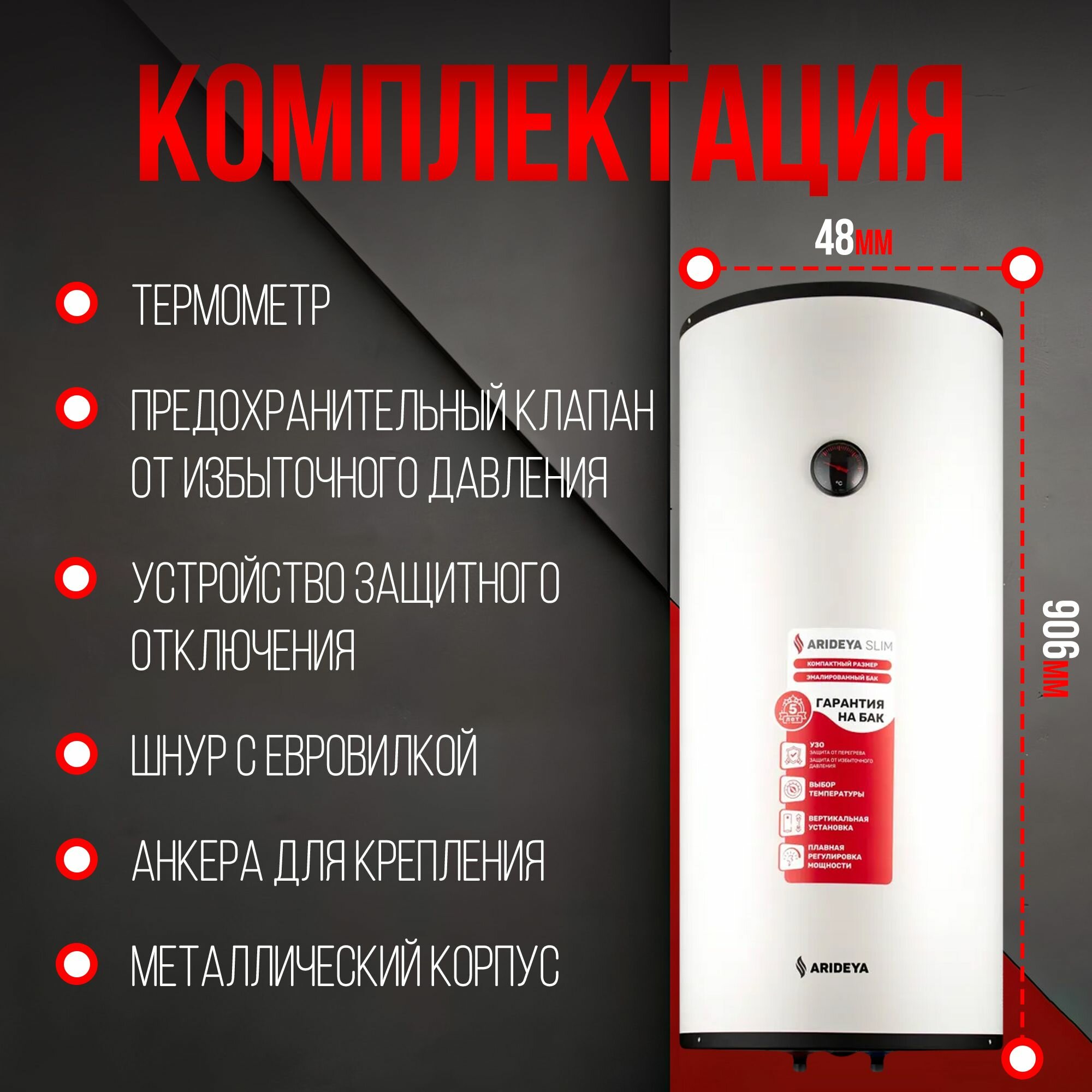 Купить Водонагреватель электрический бытовой Arideya Slim RVM-5 80L Black с доставкой по всей России. Водонагреватель электрический бытовой Arideya Slim RVM-5 80L Black: сравнение цен, характеристики, фото, актуальное наличие и цены.