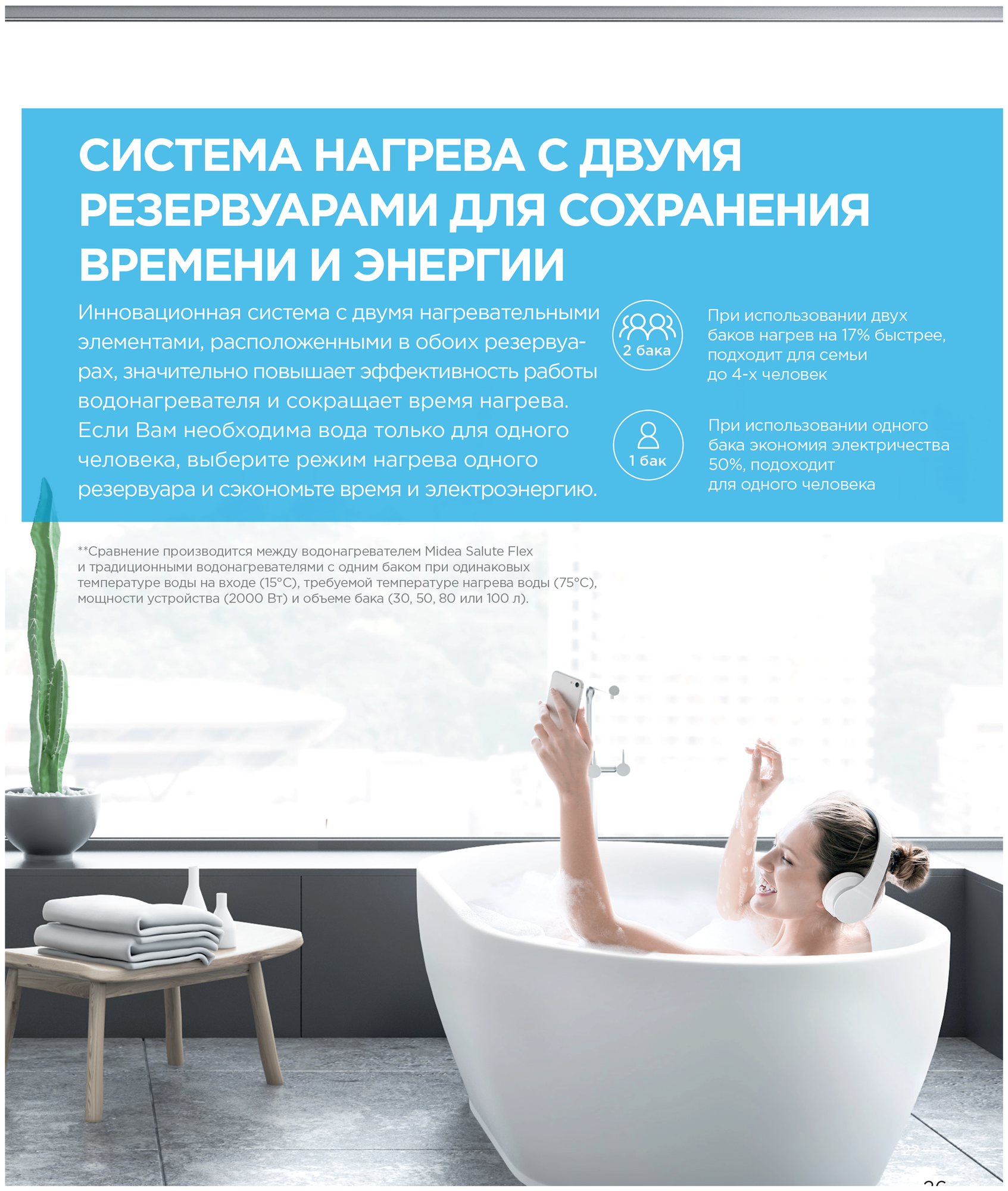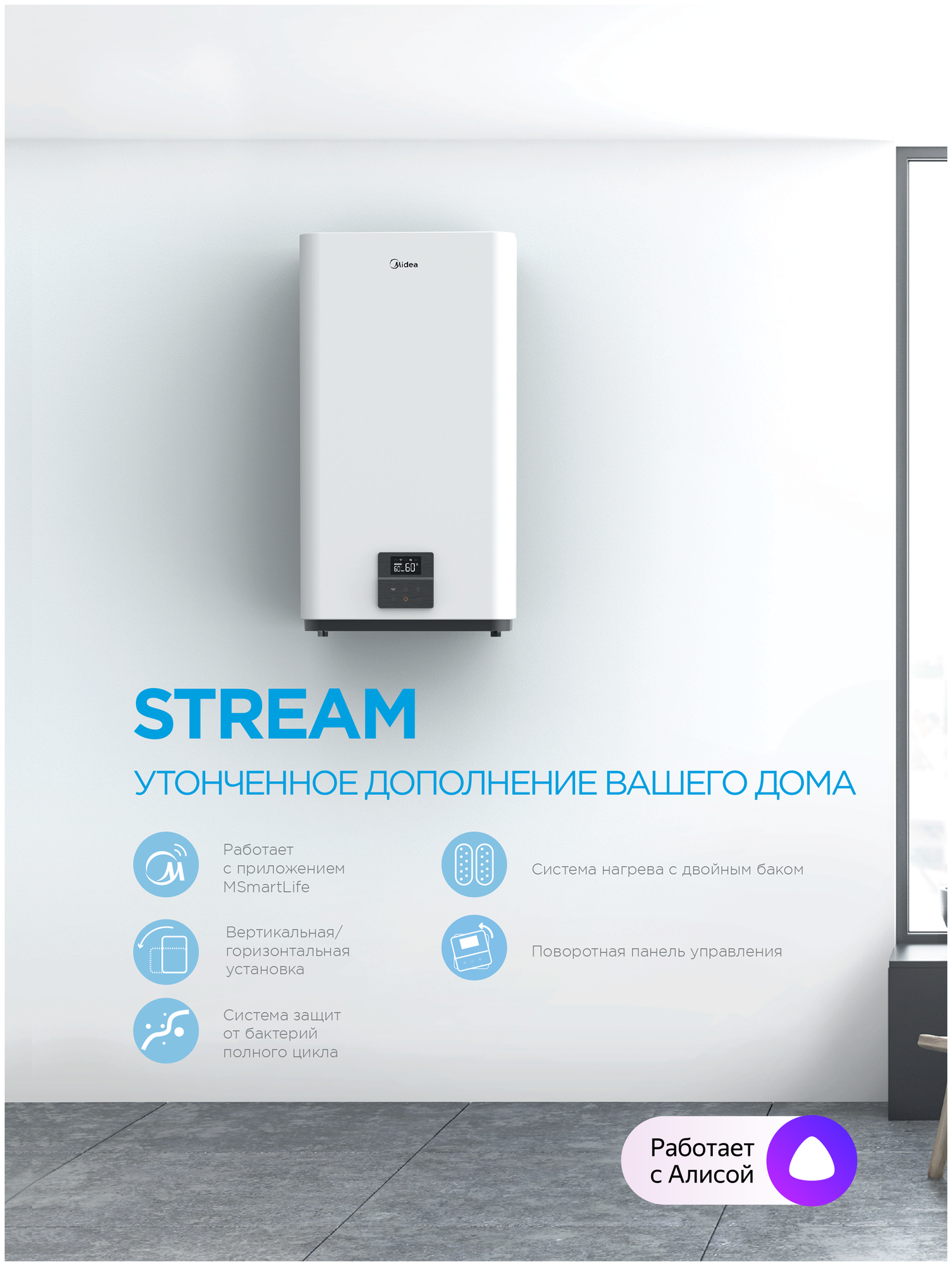 Купить Водонагреватель электрический накопительный на 80 литров с Wi-Fi Midea MWH-8020-FED с доставкой по всей России.