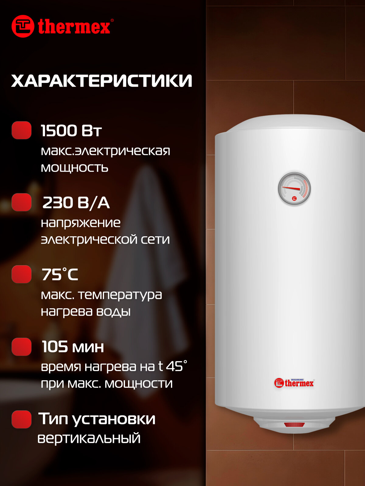 Водонагреватель электрический накопительный THERMEX TitaniumHeat 50 V Slim: сравнение цен, характеристики, фото, актуальное наличие и цены.