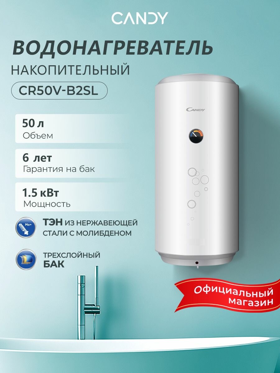 Купить Водонагреватель накопительный CANDY CR50V-B2SL 50л/1,5кВт, slim с доставкой по всей России. Водонагреватель накопительный CANDY CR50V-B2SL 50л/1,5кВт, slim: сравнение цен, характеристики, фото, актуальное наличие и цены.