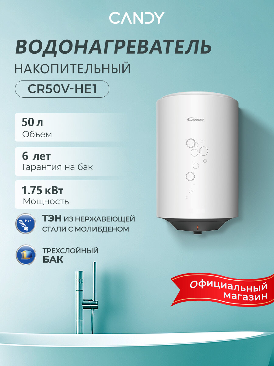 Купить Водонагреватель накопительный CANDY CR50V-HE1 50л/1,75кВт с доставкой по всей России. Водонагреватель накопительный CANDY CR50V-HE1 50л/1,75кВт: сравнение цен, характеристики, фото, актуальное наличие и цены.