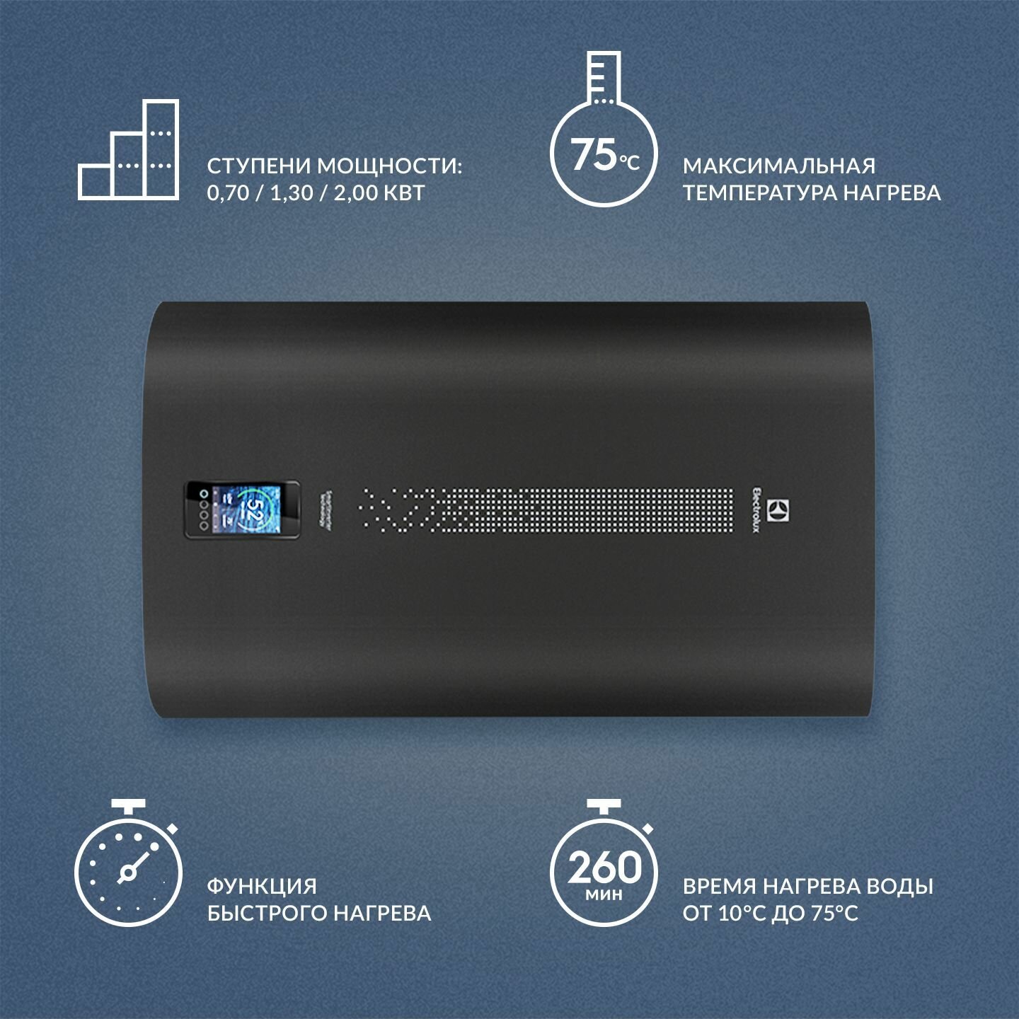 Теперь в водонагревателях Electrolux предусмотрена возможность установки таймера или отложенного нагрева — прибор самостоятельно рассчитает время нагрева воды по настройкам пользователя, включится заблаговременно и начнет нагрев. Просто установите время, к которому Вам потребуется горячая вода.