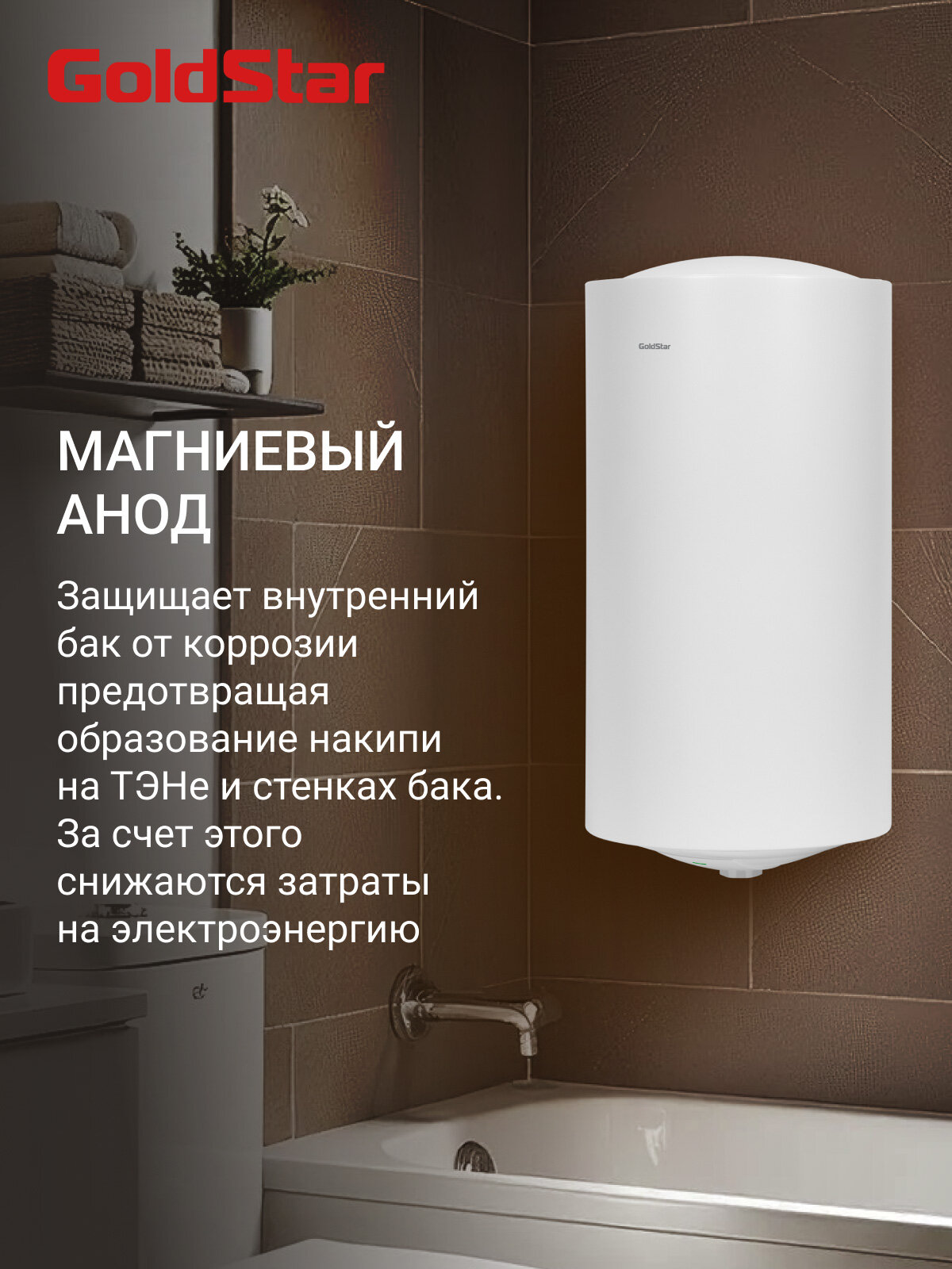 Водонагреватель накопительный GoldStar GSSWH/E-R-100/WHITE, 100 л, 1500 Вт, 3 режима, магниевый анод, эмалированный бак: сравнение цен, характеристики, фото, актуальное наличие и цены.