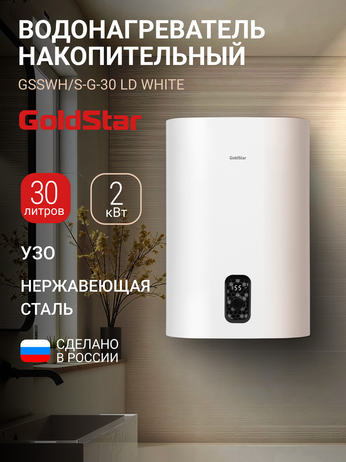 Водонагреватель накопительный GoldStar GSSWH/S-G-30 LD, 30 л, 2000 Вт, 3 режима, антифрост, магниевый анод, LED-дисплей: сравнение цен, характеристики, фото, актуальное наличие и цены.