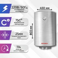 Водонагреватель накопительный SHIVAKI WH 2.0 кВт Premium, 80 литров, серебристый: сравнение цен, характеристики, фото, актуальное наличие и цены.