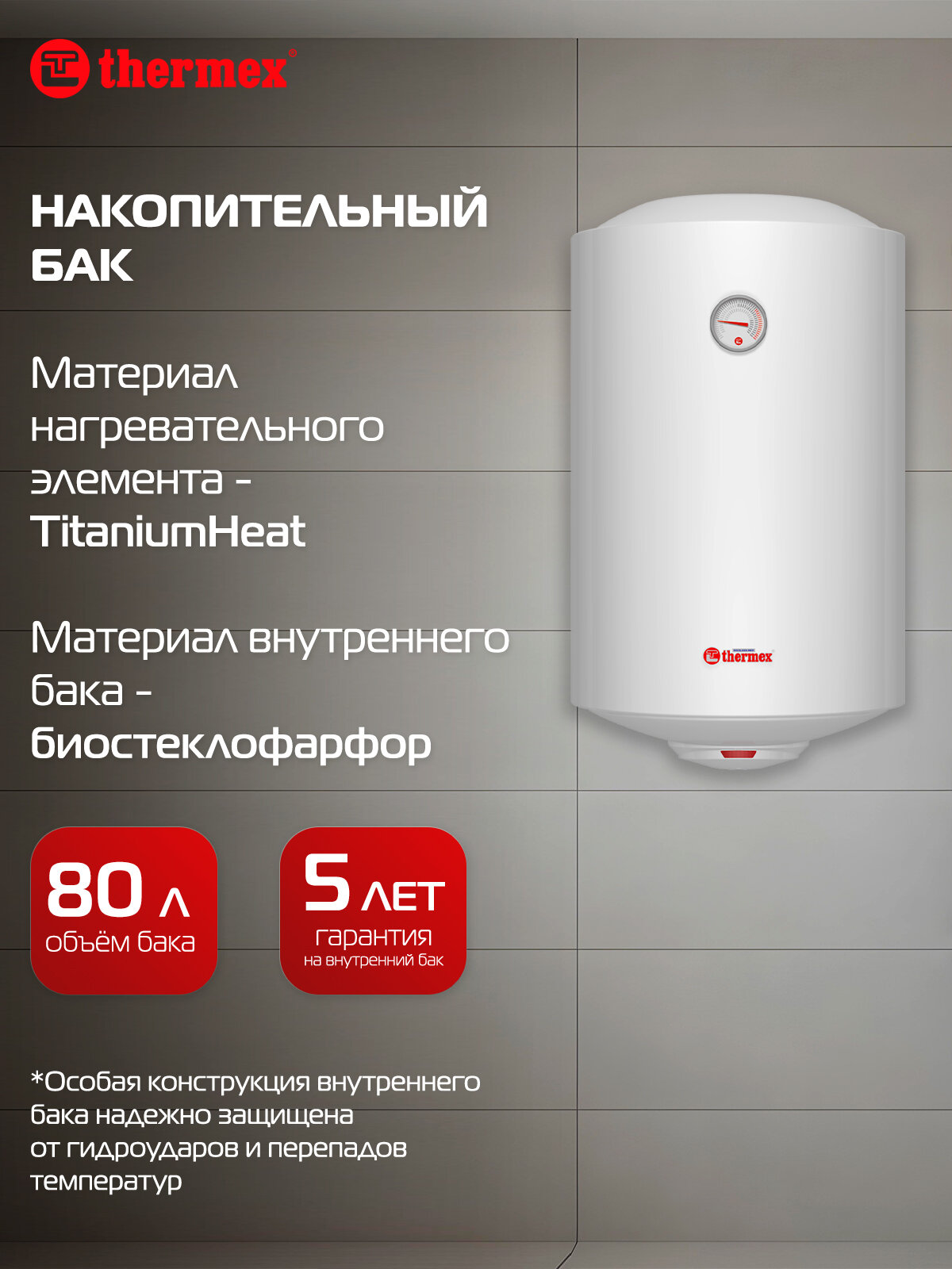 Купить Водонагреватель накопительный THERMEX TitaniumHeat 80 V белый с доставкой по всей России. Водонагреватель накопительный THERMEX TitaniumHeat 80 V белый: сравнение цен, характеристики, фото, актуальное наличие и цены.