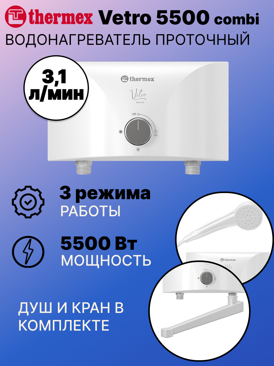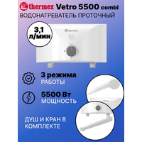 Купить Водонагреватель проточный THERMEX Vetro 5500 Combi, 5 кВт, белый с доставкой по всей России. Водонагреватель проточный THERMEX Vetro 5500 Combi, 5 кВт, белый: сравнение цен, характеристики, фото, актуальное наличие и цены.