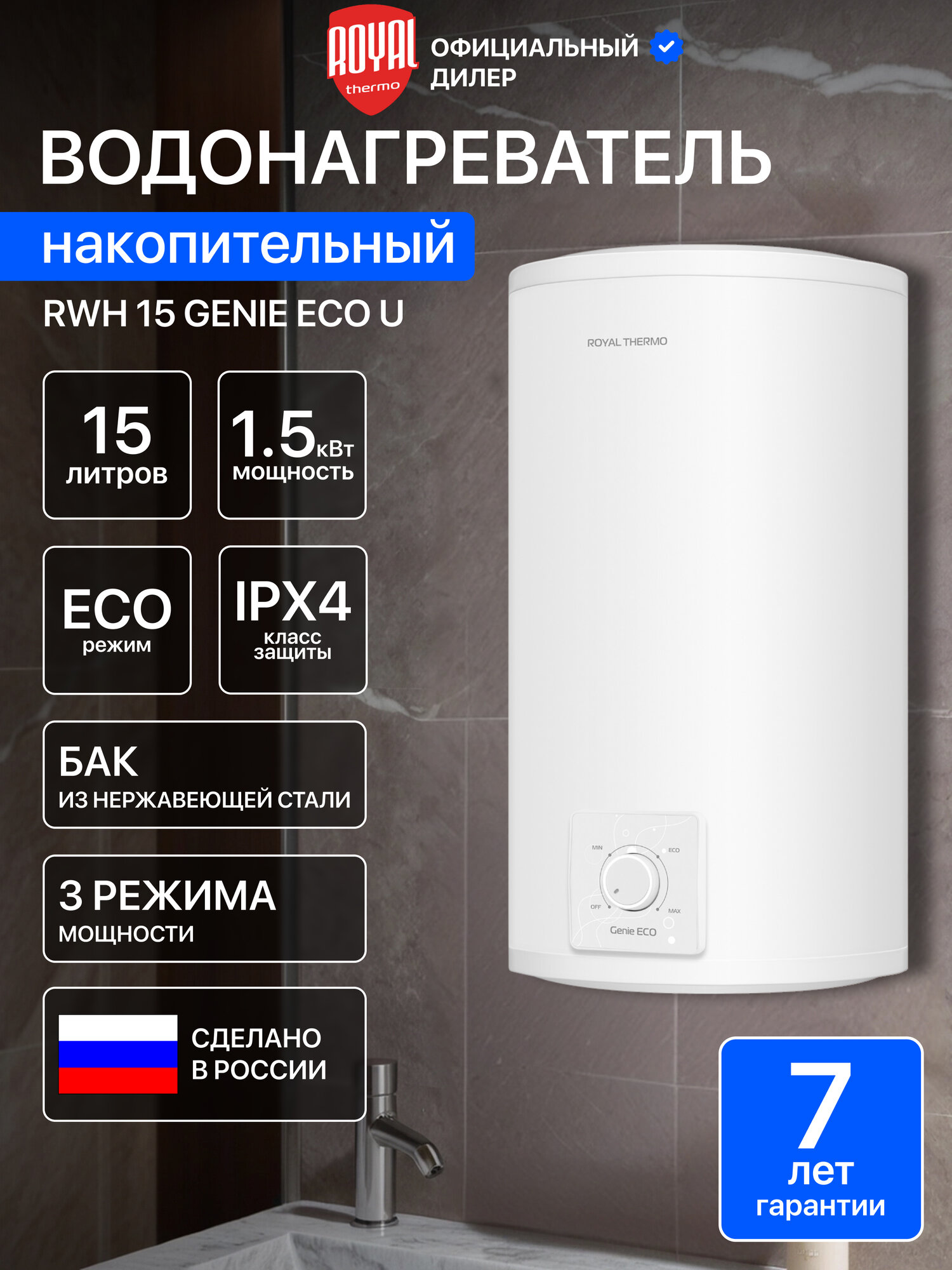 Купить Водонагреватель Royal Thermo RWH 15 Genie ECO U с доставкой по всей России. Водонагреватель Royal Thermo RWH 15 Genie ECO U: сравнение цен, характеристики, фото, актуальное наличие и цены.