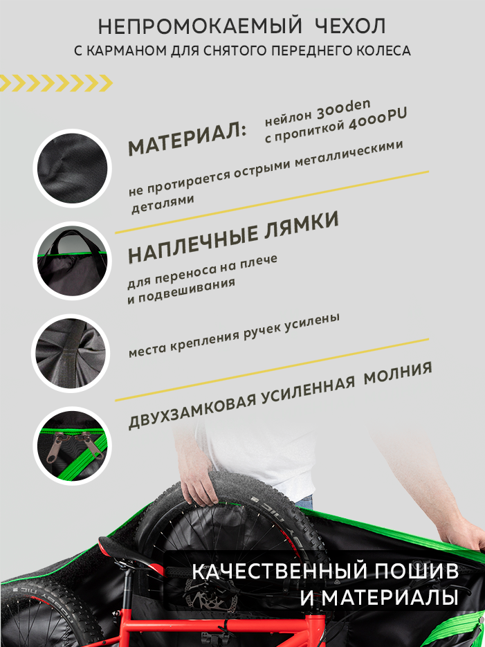 Купить Чехол для велосипеда водонепроницаемый, для хранения и перевозки, защитный 190*105 см Veloangar V28K (черный с зеленым) с доставкой по всей России.