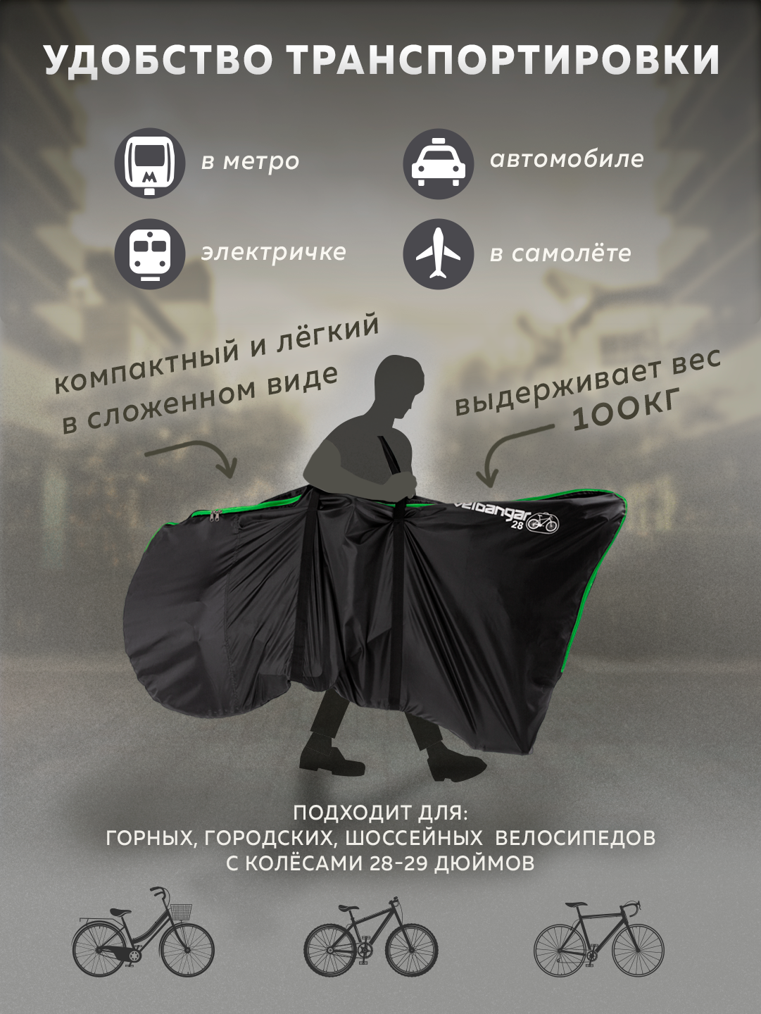 Чехол для велосипеда водонепроницаемый, для хранения и перевозки, защитный 190*105 см Veloangar V28K (черный с зеленым): сравнение цен, характеристики, фото, актуальное наличие и цены.