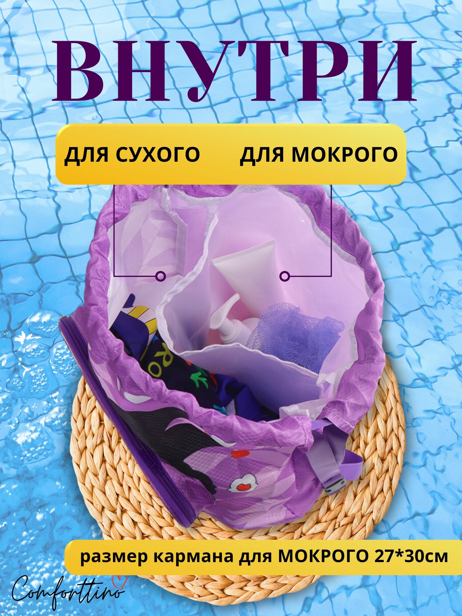 Водонепроницаемый рюкзак - мешок с рисунком Куроми походный для детских вещей и пляжа. Сумка для бассейна с отделением для обуви, сменки в детский сад и на тренировки.