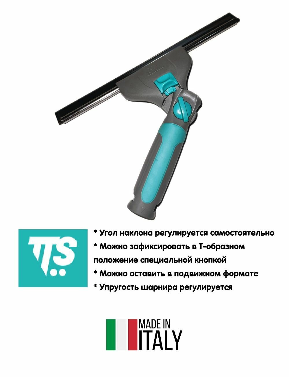 Сгон для стекол TTS 35 см с поворотным держателем и креплением лампо – профессиональный инструмент из Италии для быстрой и эффективной очистки стеклянных поверхностей. Подходит для уборки витрин, окон, зеркал, стеклянных фасадов.