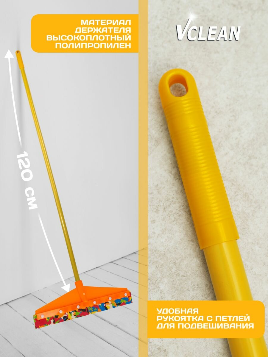 Купить Водосгон с рукояткой для стекол и пола профессиональный, 40 см, Vclean, оранжевый с доставкой по всей России.