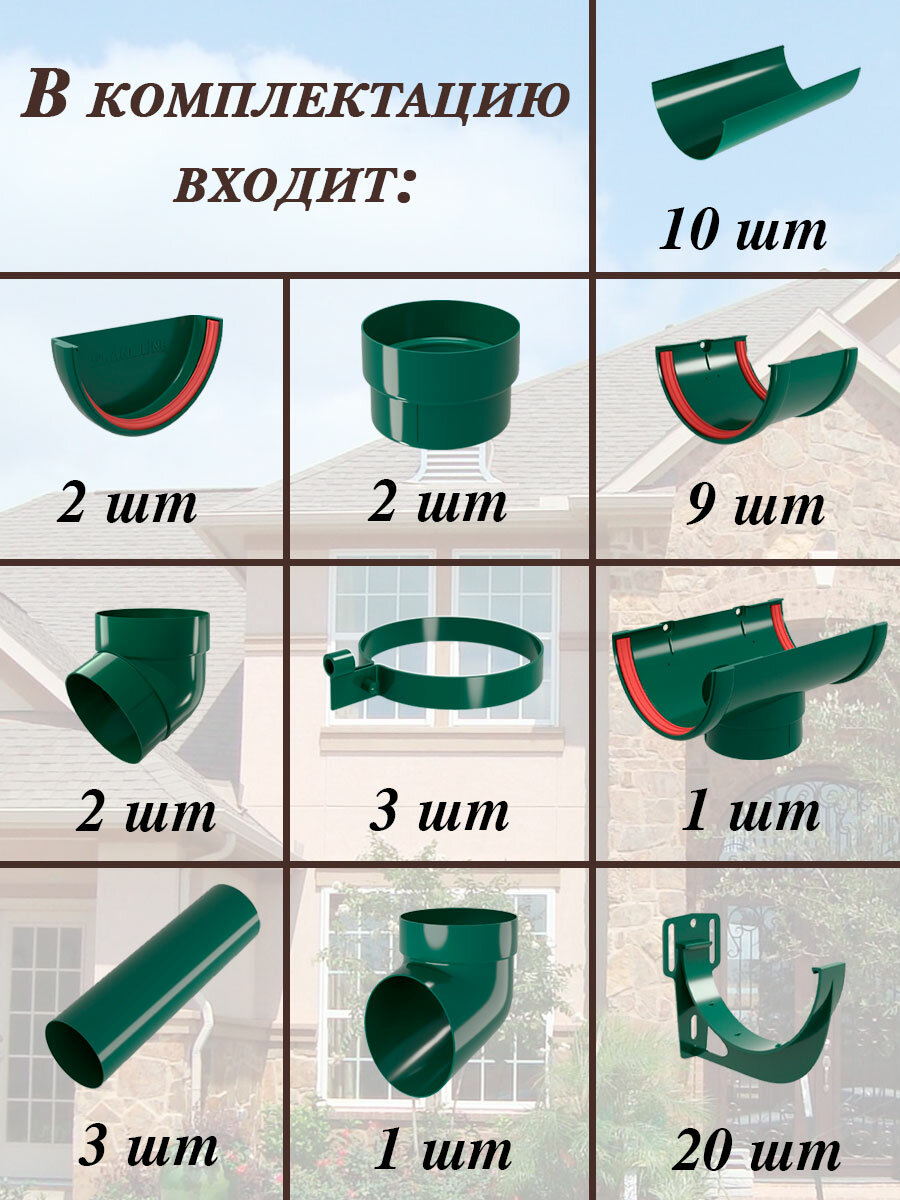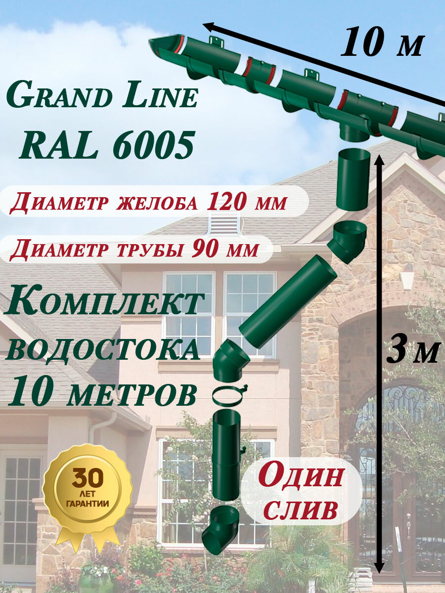 Водосточная система Grand Line 10 м по 1 метру (один слив) 120мм/90мм зеленый водосток для крыши пластиковый Гранд Лайн ( RAL 6005 мох ) комплект ПВХ: сравнение цен, характеристики, фото, актуальное наличие и цены.