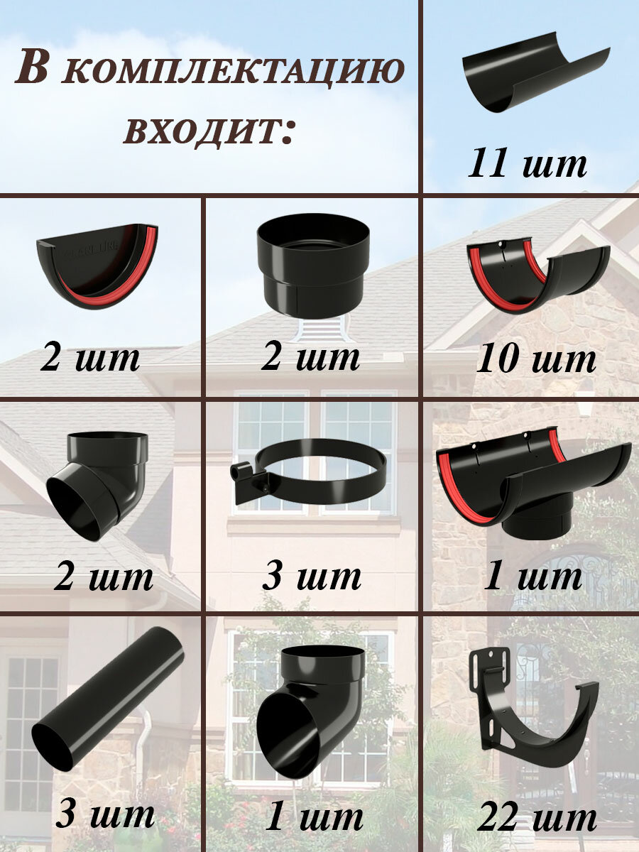 Водосточная система Grand Line 11 м по 1 метру (один слив) 120мм/90мм черный водосток для крыши пластиковый Гранд Лайн ( RAL 9005 черный янтарь ) комплект ПВХ